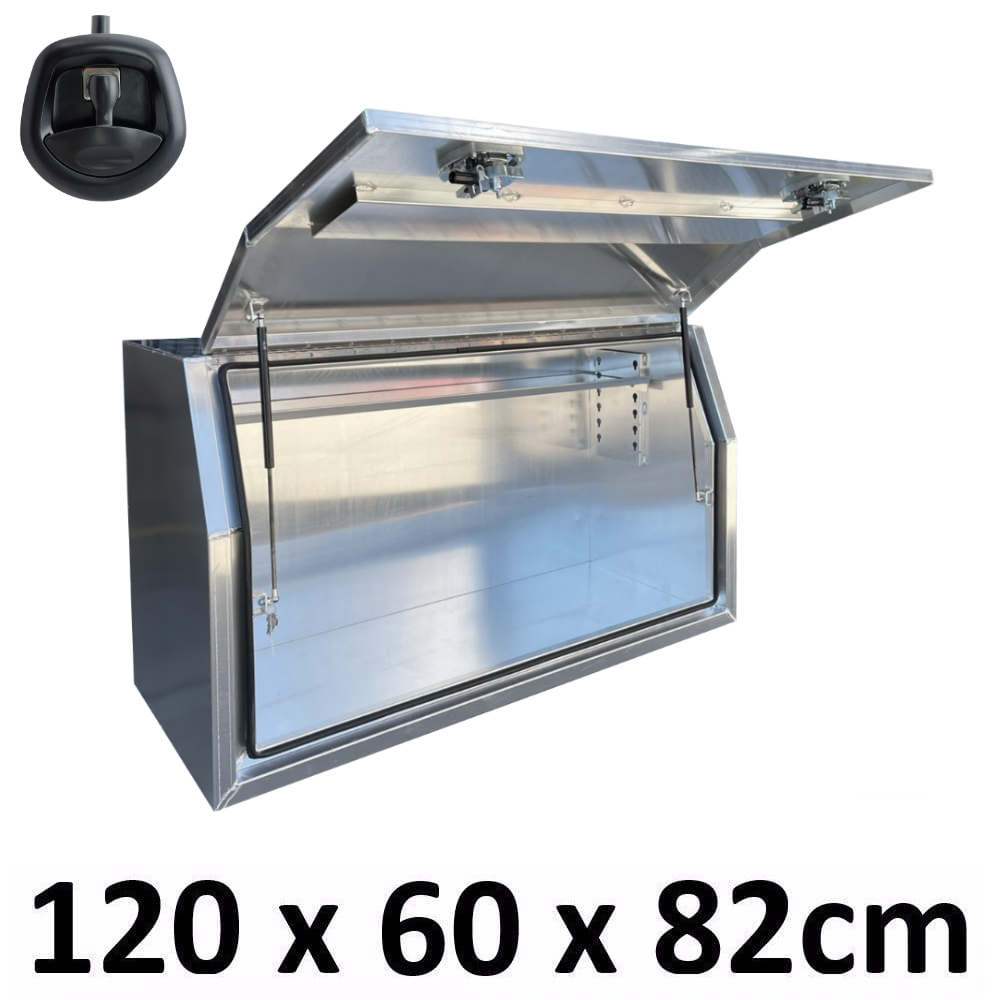 | This is designed to lock up your valuables, The Ute Tool box is hinged with Stainless Steel hinges with a Heavy Duty Whale Tail Lock with Spring Built into the lock to prevent Lock handle becoming lose With the Option to Padlock. Our Boxes are Water/Dust Resistant with Fully welding seams. Our toolboxes are built to the highest quality. Contact us today: 1300 026 937 |