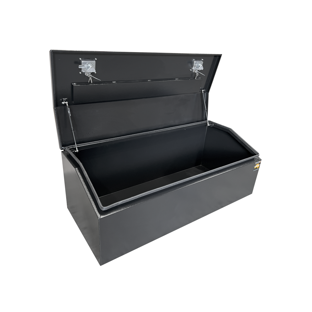 | This is designed to lock up your valuables, The Ute Tool box is hinged with Stainless Steel hinges with a Heavy Duty Stainless T-Locks with Spring Built into the lock to prevent T-Lock handle becoming lose. Our Boxes are Water/Dust Resistant with Fully welding seams. Our toolboxes are built to the highest quality. Contact us today: 1300 026 937 |