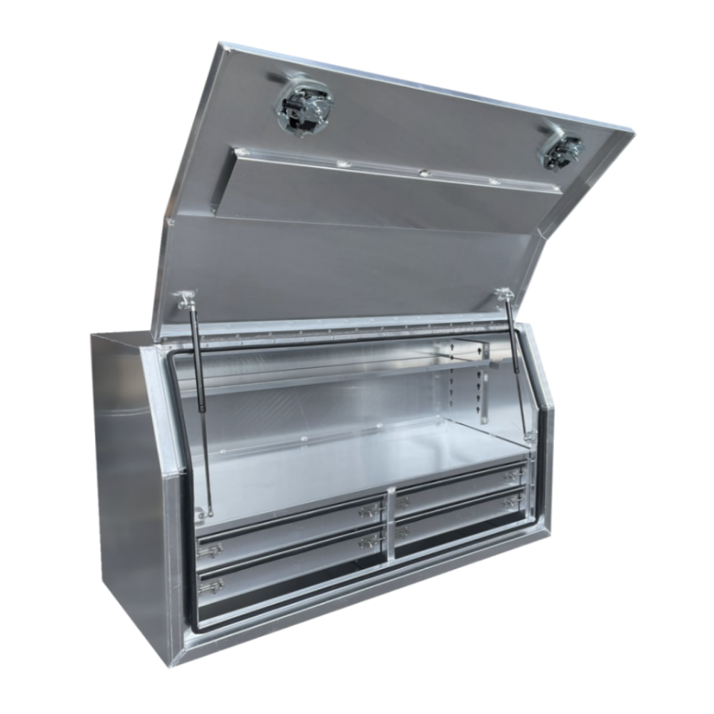 | This is designed to lock up your valuables, The Ute Tool box is hinged with Stainless Steel hinges with a Heavy Duty Whale Tail Lock with Spring Built into the lock to prevent Lock handle becoming lose With the Option to Padlock. Our Boxes are Water/Dust Resistant with Fully welding seams. Our toolboxes are built to the highest quality. Contact us today: 1300 026 937 | |