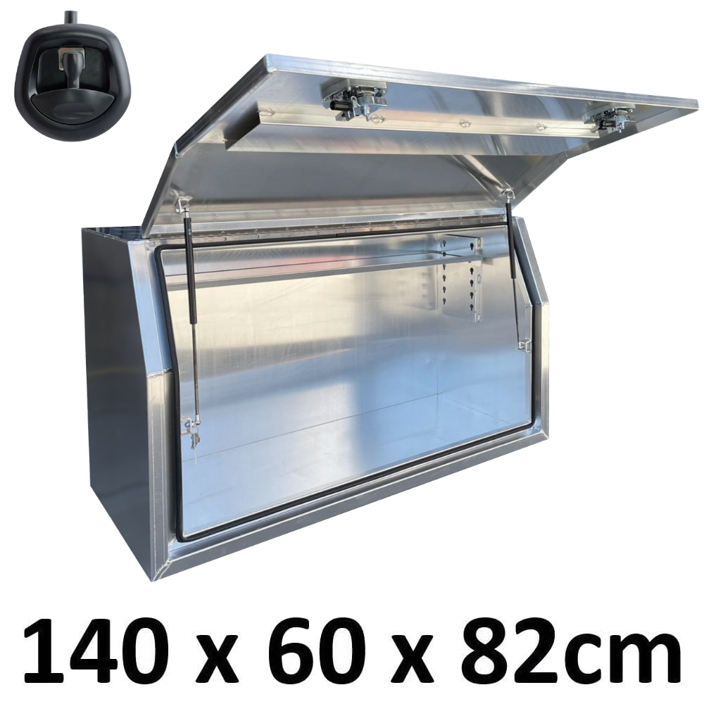 | This is designed to lock up your valuables, The Ute Tool box is hinged with Stainless Steel hinges with a Heavy Duty Whale Tail Lock with Spring Built into the lock to prevent Lock handle becoming lose With the Option to Padlock. Our Boxes are Water/Dust Resistant with Fully welding seams. Our toolboxes are built to the highest quality. Contact us today: 1300 026 937 |