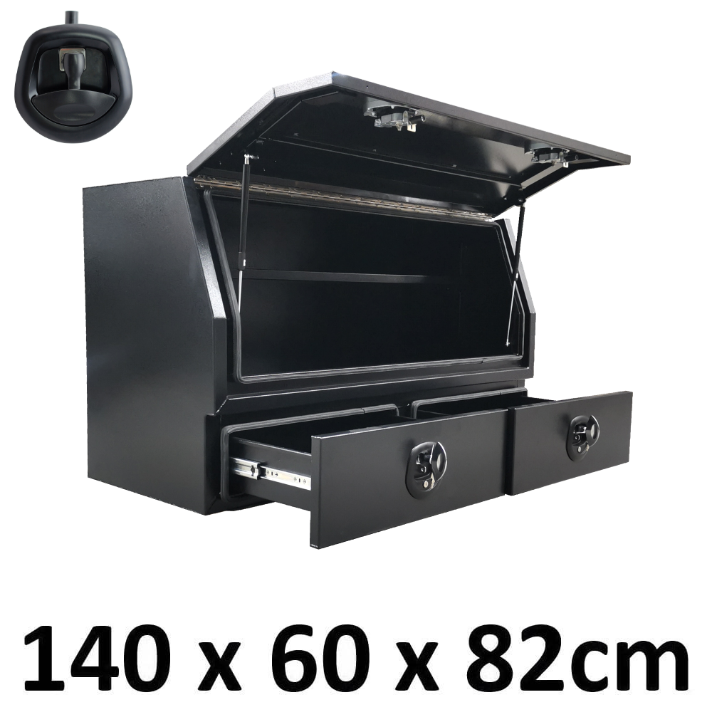 | This is designed to lock up your valuables, The Ute Tool box is hinged with Stainless Steel hinges with a Heavy Duty Whale Tail Lock with Spring Built into the lock to prevent Lock handle becoming lose With the Option to Padlock. Our Boxes are Water/Dust Resistant with Fully welding seams. Our toolboxes are built to the highest quality. Contact us today: 1300 026 937 |