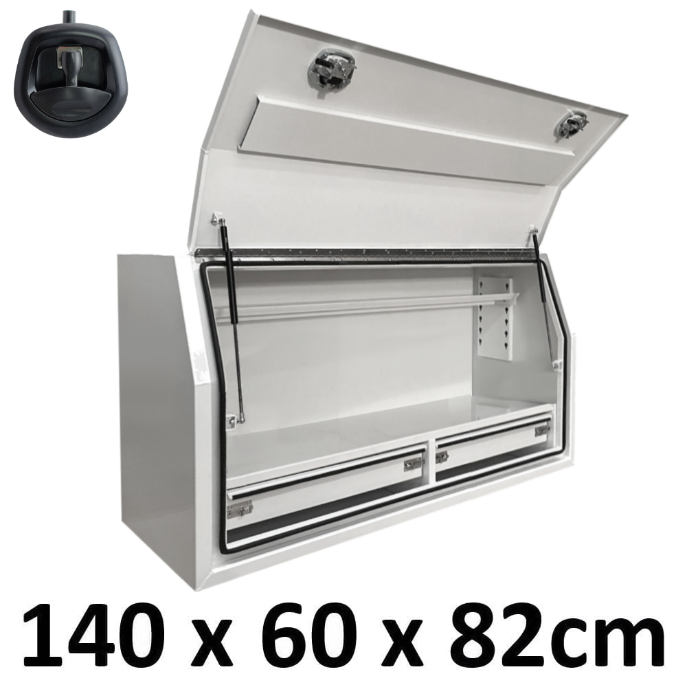 | This is designed to lock up your valuables, The Ute Tool box is hinged with Stainless Steel hinges with a Heavy Duty Whale Tail Lock with Spring Built into the lock to prevent Lock handle becoming lose With the Option to Padlock. Our Boxes are Water/Dust Resistant with Fully welding seams. Our toolboxes are built to the highest quality. Contact us today: 1300 026 937 |