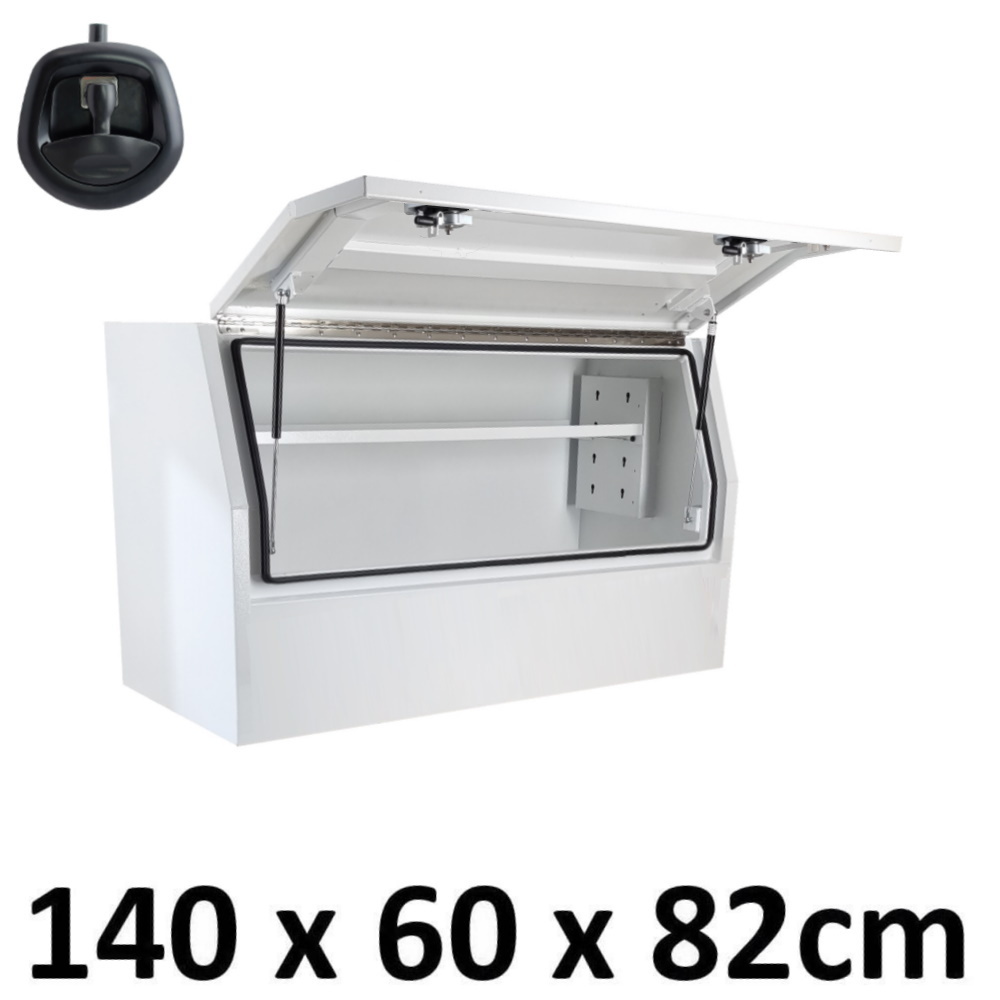 | This is designed to lock up your valuables, The Ute Tool box is hinged with Stainless Steel hinges with a Heavy Duty Whale Tail Lock with Spring Built into the lock to prevent Lock handle becoming lose With the Option to Padlock. Our Boxes are Water/Dust Resistant with Fully welding seams. Our toolboxes are built to the highest quality. Contact us today: 1300 026 937 | |