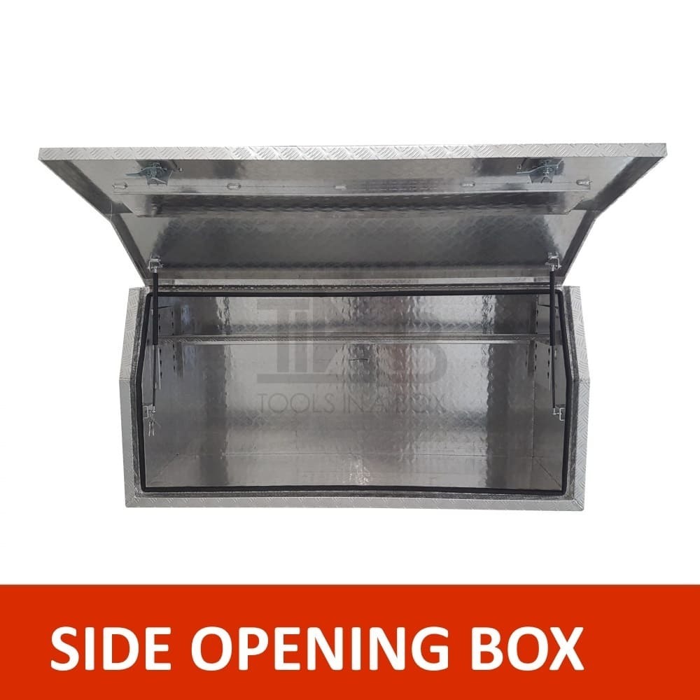 | This is designed to lock up your valuables, The Ute Tool box is hinged with Stainless Steel hinges with a Heavy Duty Whale Tail Lock with Spring Built into the lock to prevent Lock handle becoming lose With the Option to Padlock. Our Boxes are Water/Dust Resistant with Fully welding seams. Our toolboxes are built to the highest quality. Contact us today: 1300 026 937 |