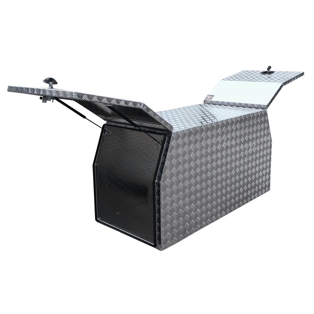 | This is designed to lock up your valuables, The Ute Tool box is hinged with Stainless Steel hinges with a Heavy Duty Stainless Whale Tail Lock with Spring Built into the lock to prevent T-Lock handle becoming lose With the Option to Padlock. Our Boxes are Water/Dust Resistant with Fully welding seams. Our toolboxes are built to the highest quality. Contact us today: 1300 026 937 |