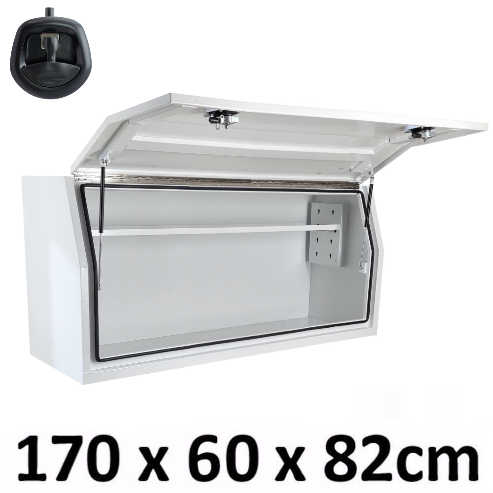 | This is designed to lock up your valuables, The Ute Tool box is hinged with Stainless Steel hinges with a Heavy Duty Whale Tail Lock with Spring Built into the lock to prevent Lock handle becoming lose With the Option to Padlock. Our Boxes are Water/Dust Resistant with Fully welding seams. Our toolboxes are built to the highest quality. Contact us today: 1300 026 937 | |