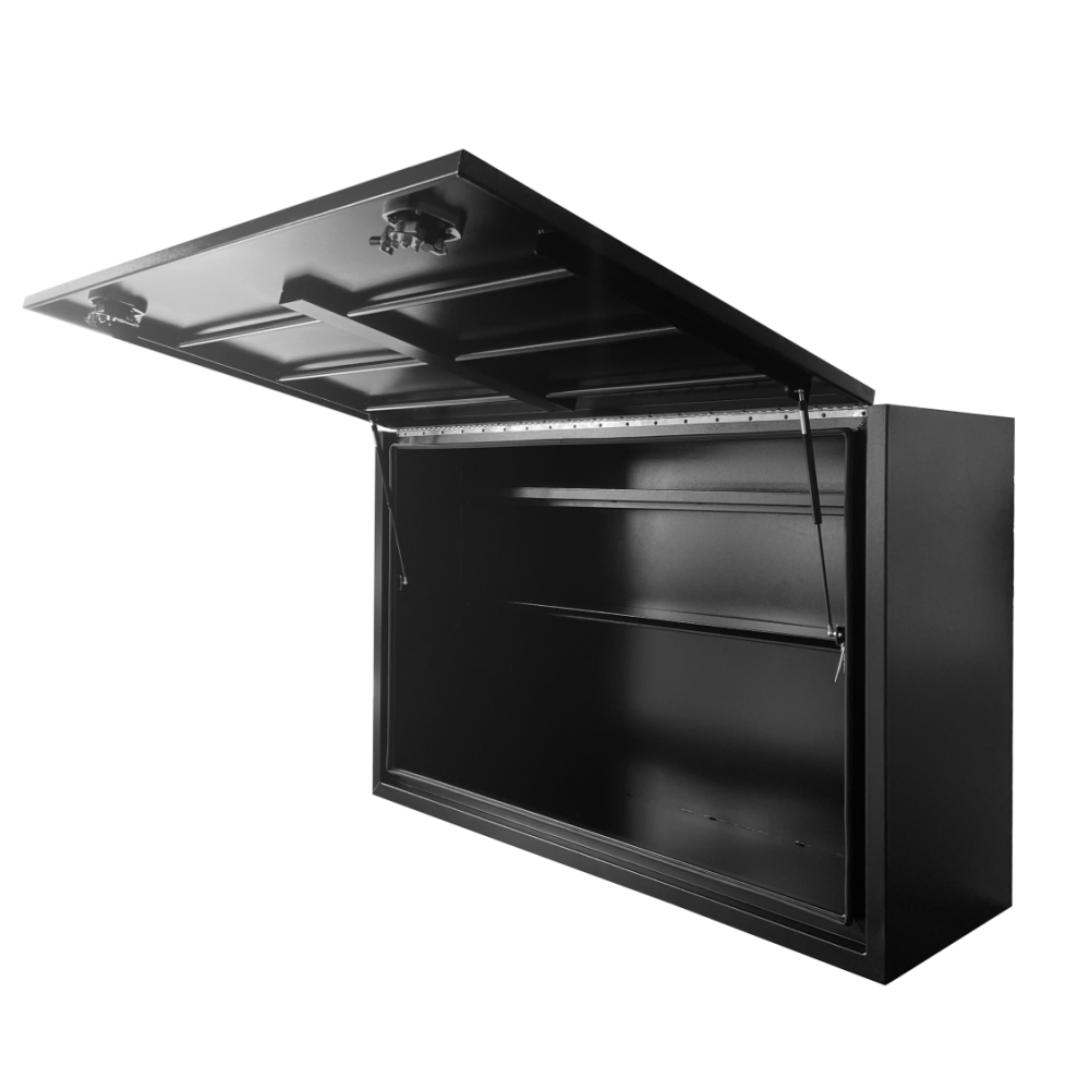 | This is designed to lock up your valuables, The Ute Tool box is hinged with Stainless Steel hinges with a Heavy Duty Whale Tail Lock with Spring Built into the lock to prevent Lock handle becoming lose With the Option to Padlock. Our Boxes are Water/Dust Resistant with Fully welding seams. Our toolboxes are built to the highest quality. Contact us today: 1300 026 937 |