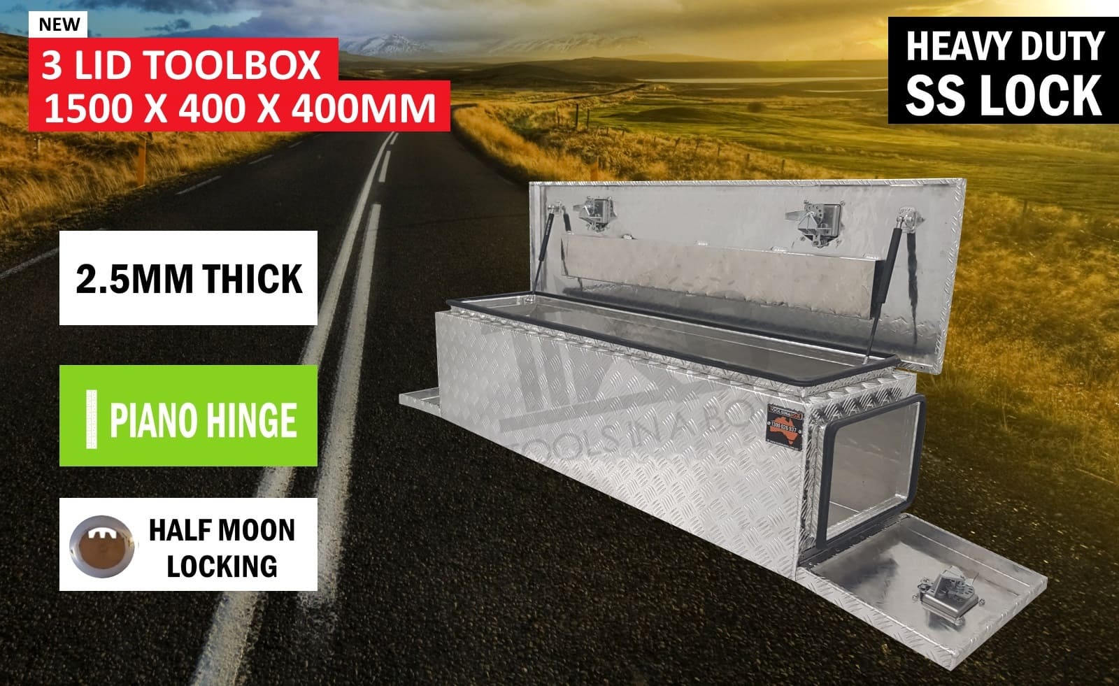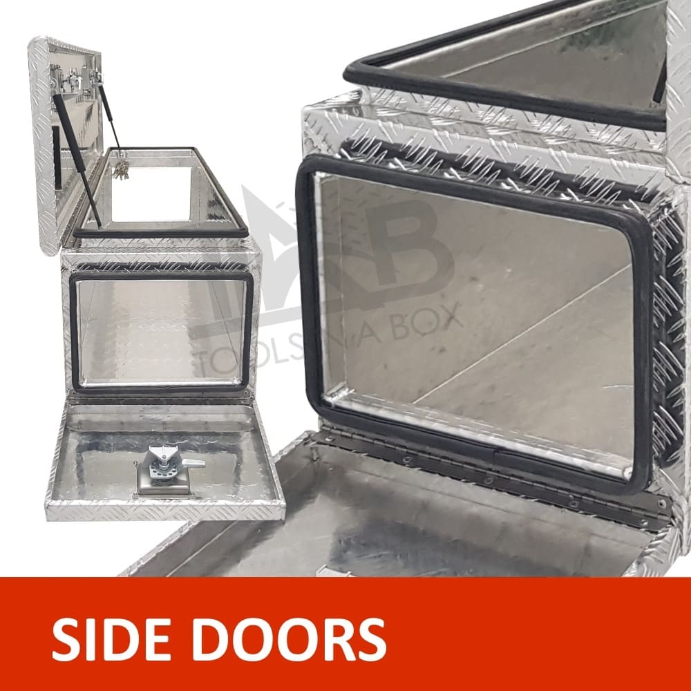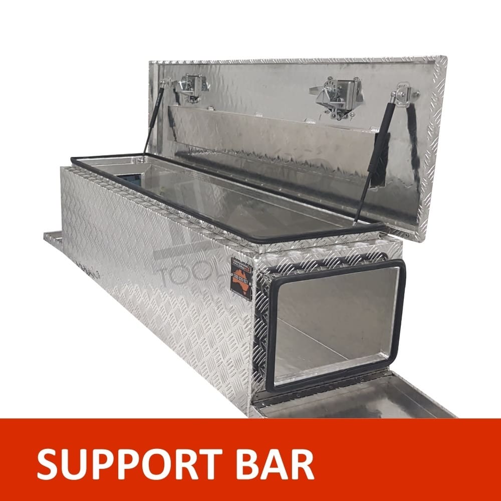 | This is designed to lock up your valuables, The Ute Tool box is hinged with Stainless Steel hinges with a Heavy Duty Stainless T-Locks with Spring Built into the lock to prevent T-Lock handle becoming lose. Our Boxes are Water/Dust Resistant with Fully welding seams. Our toolboxes are built to the highest quality. Contact us today: 1300 026 937 |