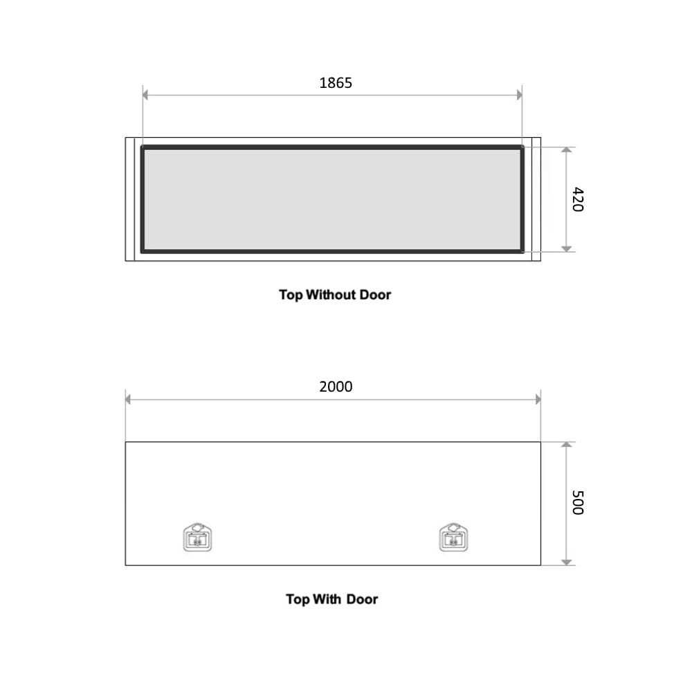 | Opening Sizes: | Top Lid - Length: 1865mm - Height: 420mm Side Lid - Length: 420mm - Height: 330mm |