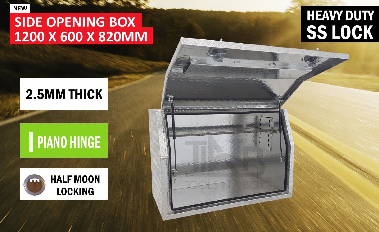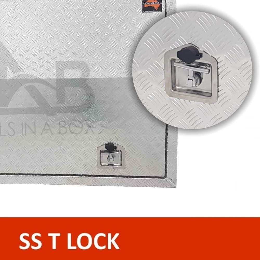 | This is designed to lock up your valuables, The Ute Tool box is hinged with Stainless Steel hinges with a Heavy Duty Whale Tail Lock with Spring Built into the lock to prevent Lock handle becoming lose With the Option to Padlock. Our Boxes are Water/Dust Resistant with Fully welding seams. Our toolboxes are built to the highest quality. Contact us today: 1300 026 937 | |