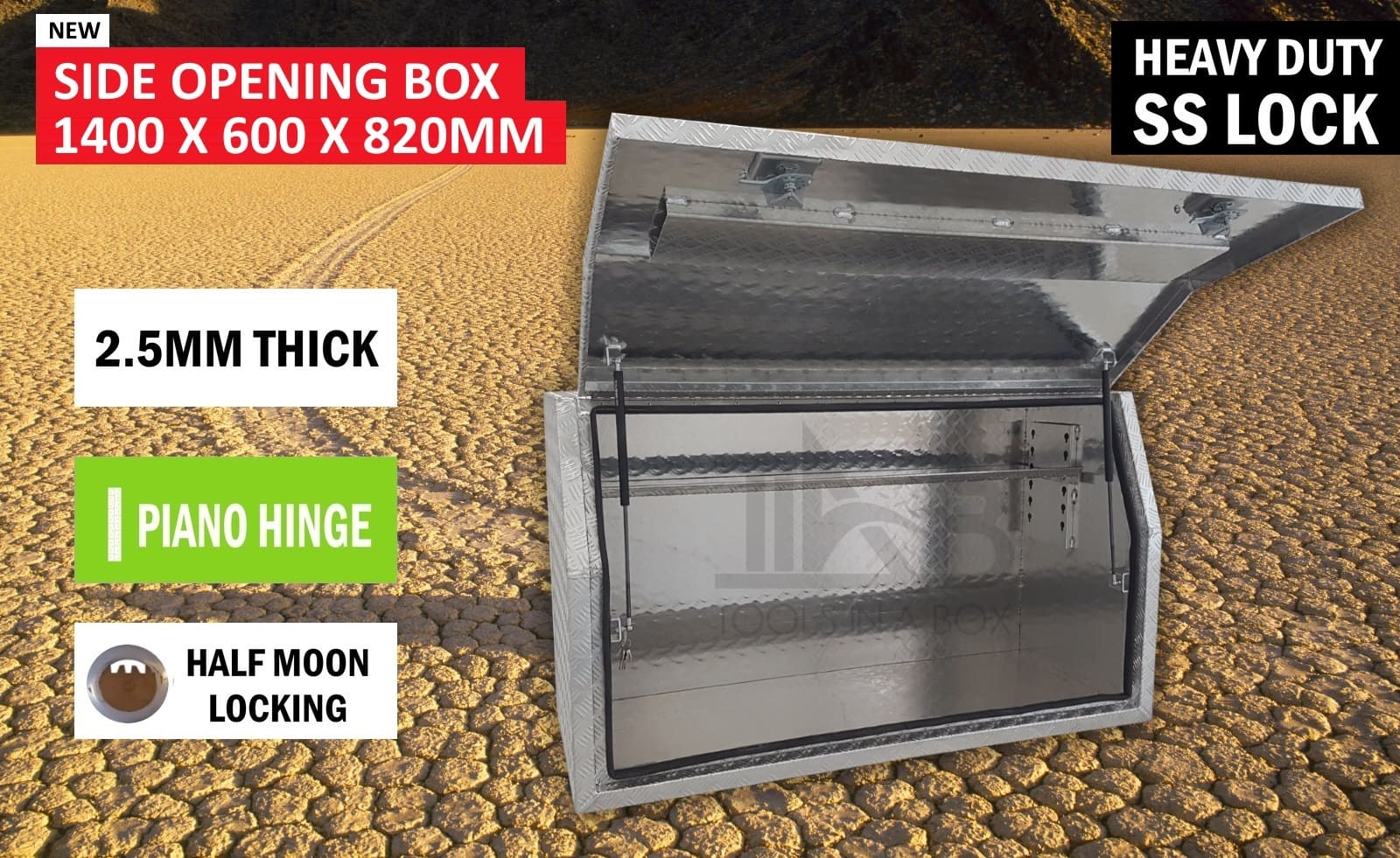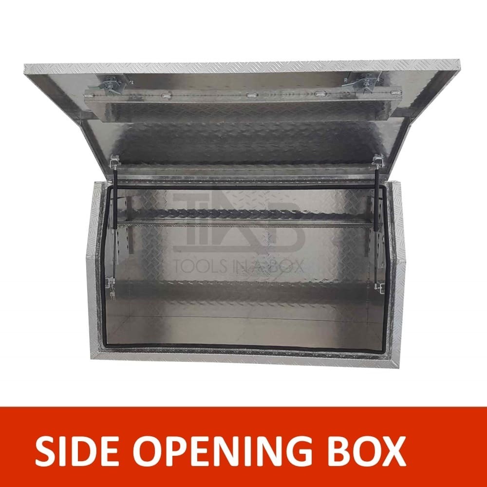 | This is designed to lock up your valuables, The Ute Tool box is hinged with Stainless Steel hinges with a Heavy Duty Whale Tail Lock with Spring Built into the lock to prevent Lock handle becoming lose With the Option to Padlock. Our Boxes are Water/Dust Resistant with Fully welding seams. Our toolboxes are built to the highest quality. Contact us today: 1300 026 937 |