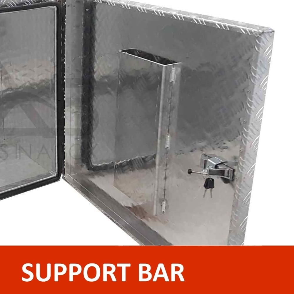 | This is designed to lock up your valuables, The Ute Tool box is hinged with Stainless Steel hinges with a Heavy Duty Stainless T-Locks with Spring Built into the lock to prevent T-Lock handle becoming lose. Our Boxes are Water/Dust Resistant with Fully welding seams. Our toolboxes are built to the highest quality. Contact us today: 1300 026 937 |