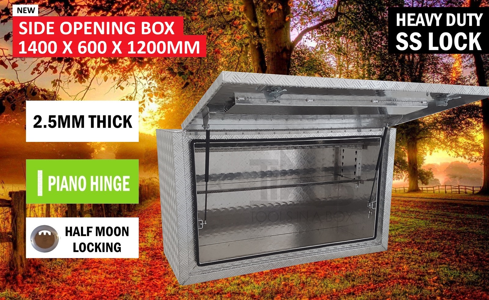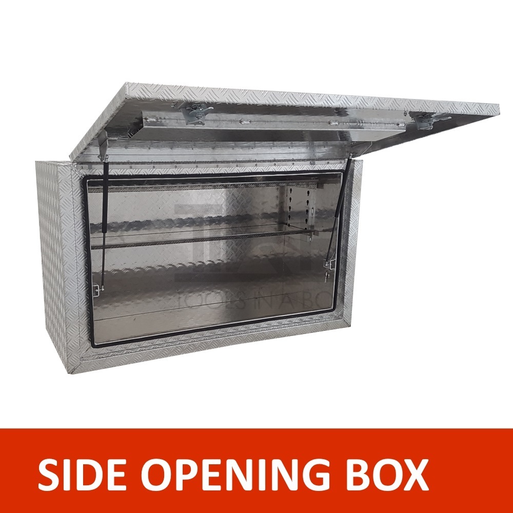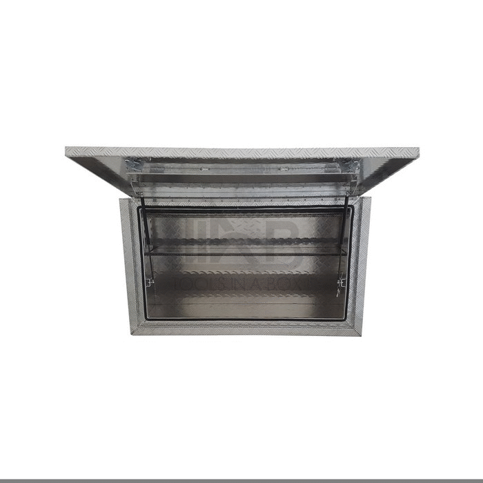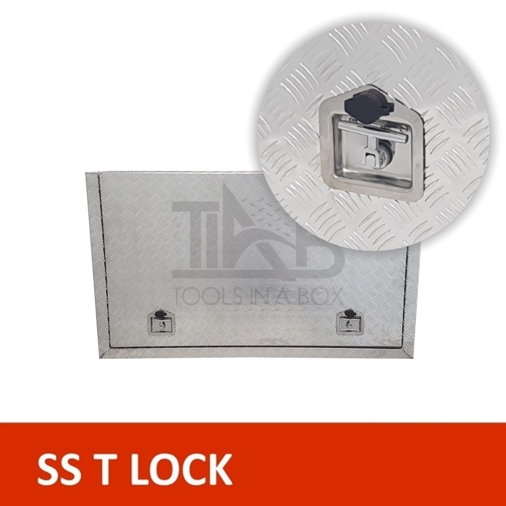 | This is designed to lock up your valuables, The Ute Tool box is hinged with Stainless Steel hinges with a Heavy Duty Whale Tail Lock with Spring Built into the lock to prevent Lock handle becoming lose With the Option to Padlock. Our Boxes are Water/Dust Resistant with Fully welding seams. Our toolboxes are built to the highest quality. Contact us today: 1300 026 937 | |