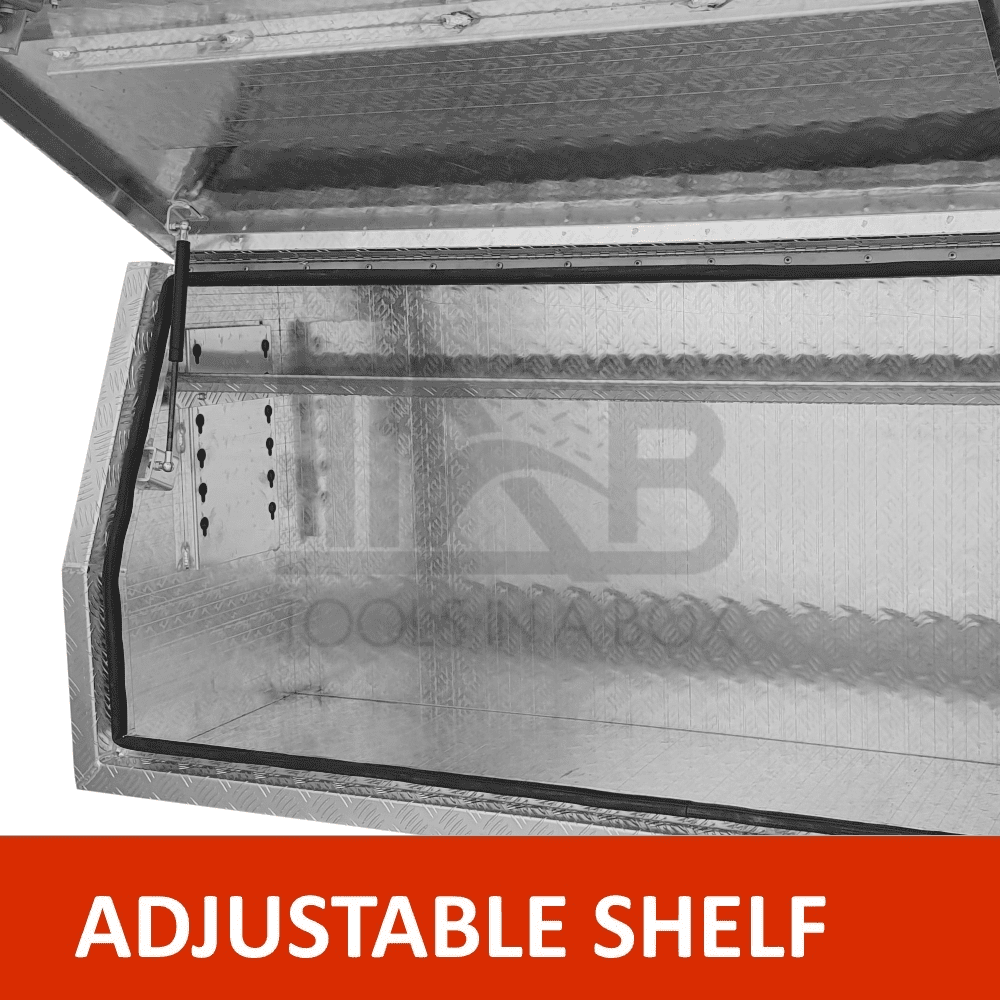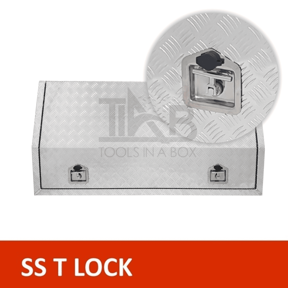 | This is designed to lock up your valuables, The Ute Tool box is hinged with Stainless Steel hinges with a Heavy Duty Whale Tail Lock with Spring Built into the lock to prevent Lock handle becoming lose With the Option to Padlock. Our Boxes are Water/Dust Resistant with Fully welding seams. Our toolboxes are built to the highest quality. Contact us today: 1300 026 937 | |