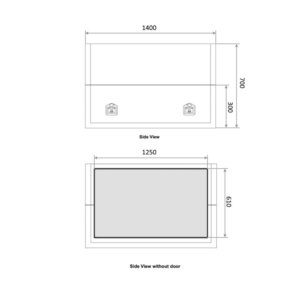 | Opening Sizes: | - Length: 1230mm - Height: 600mm |