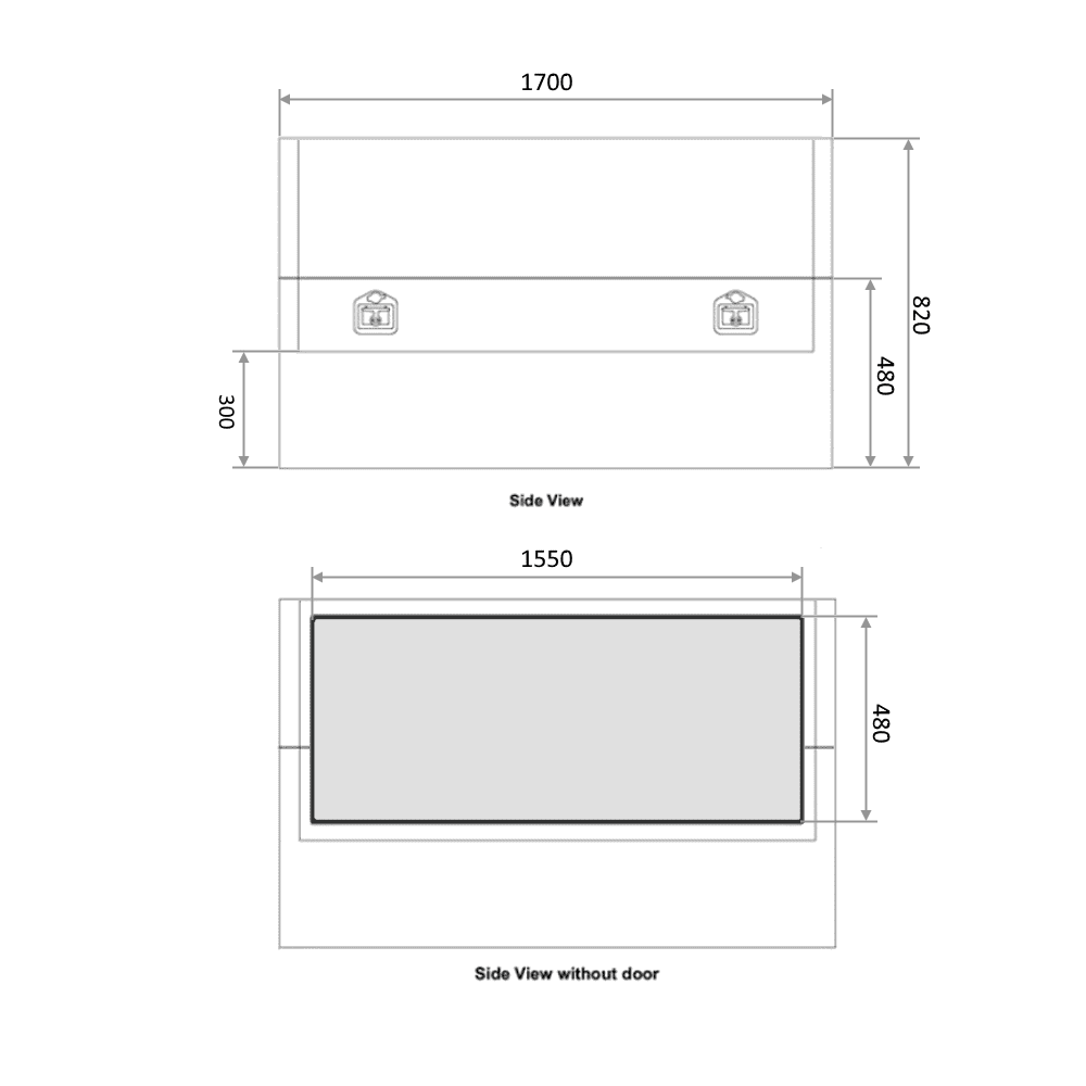 | Opening Sizes: | - Length: 1530mm - Height: 440mm - Space from Bottom to Lid 300mm |