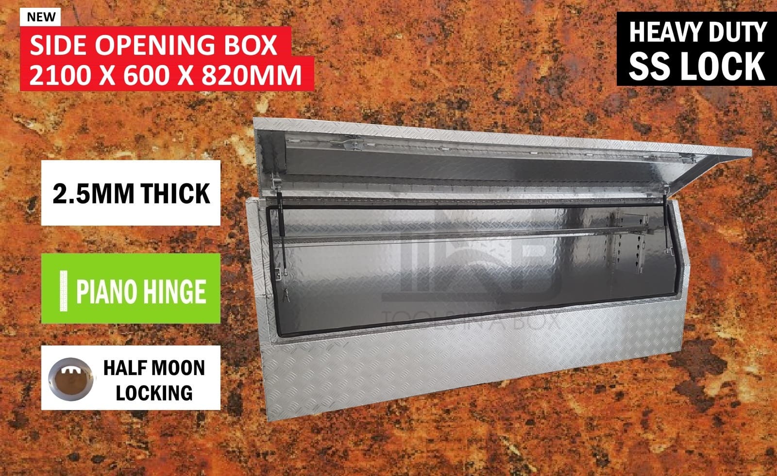 | This is designed to lock up your valuables, The Ute Tool box is hinged with Stainless Steel hinges with a Heavy Duty Whale Tail Lock with Spring Built into the lock to prevent Lock handle becoming lose With the Option to Padlock. Our Boxes are Water/Dust Resistant with Fully welding seams. Our toolboxes are built to the highest quality. Contact us today: 1300 026 937 | |