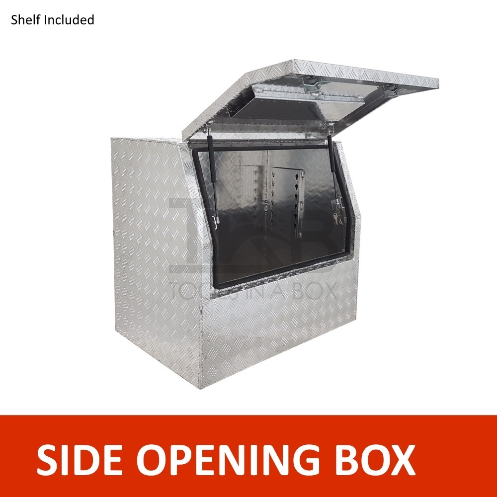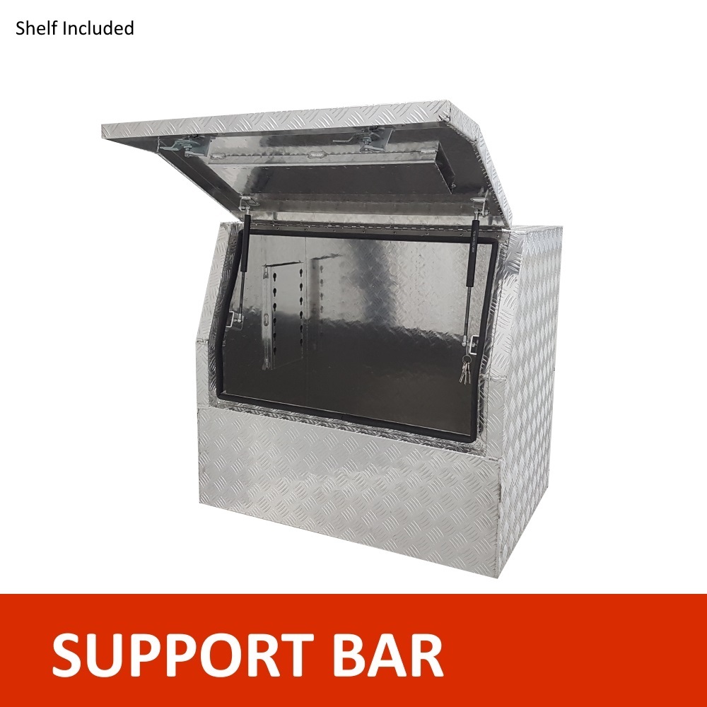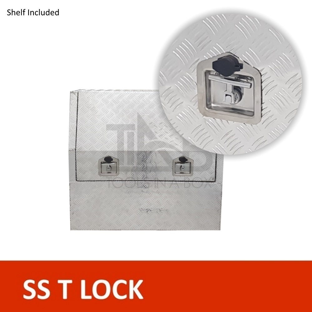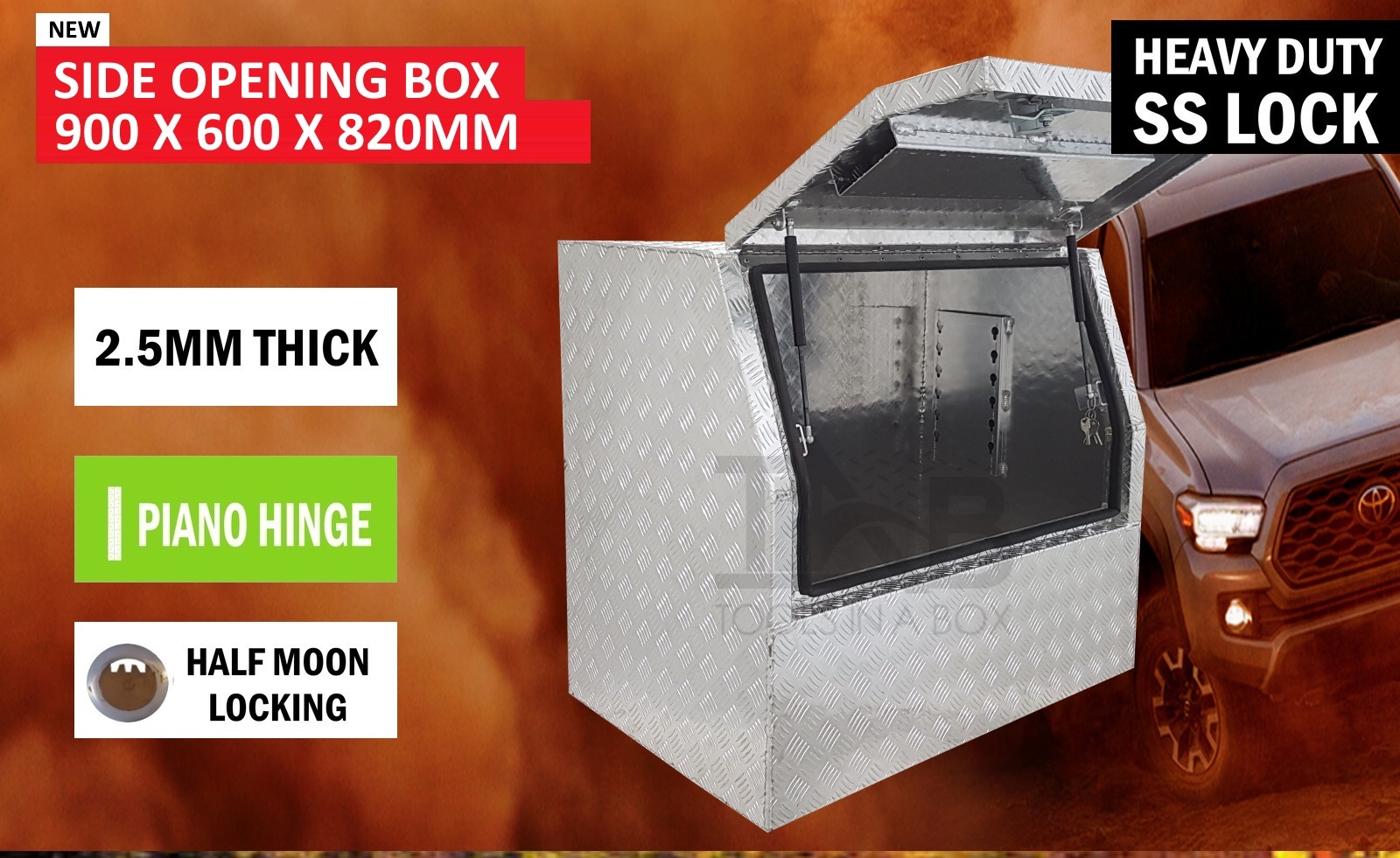 | This is designed to lock up your valuables, The Ute Tool box is hinged with Stainless Steel hinges with a Heavy Duty Whale Tail Lock with Spring Built into the lock to prevent Lock handle becoming lose With the Option to Padlock. Our Boxes are Water/Dust Resistant with Fully welding seams. Our toolboxes are built to the highest quality. Contact us today: 1300 026 937 |