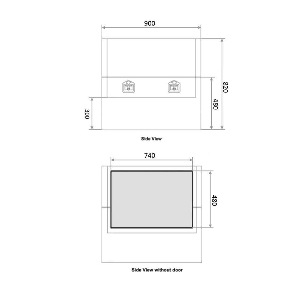 | Opening Sizes: | - Length: 730mm - Height: 440mm - Space from Bottom to Lid 300mm |