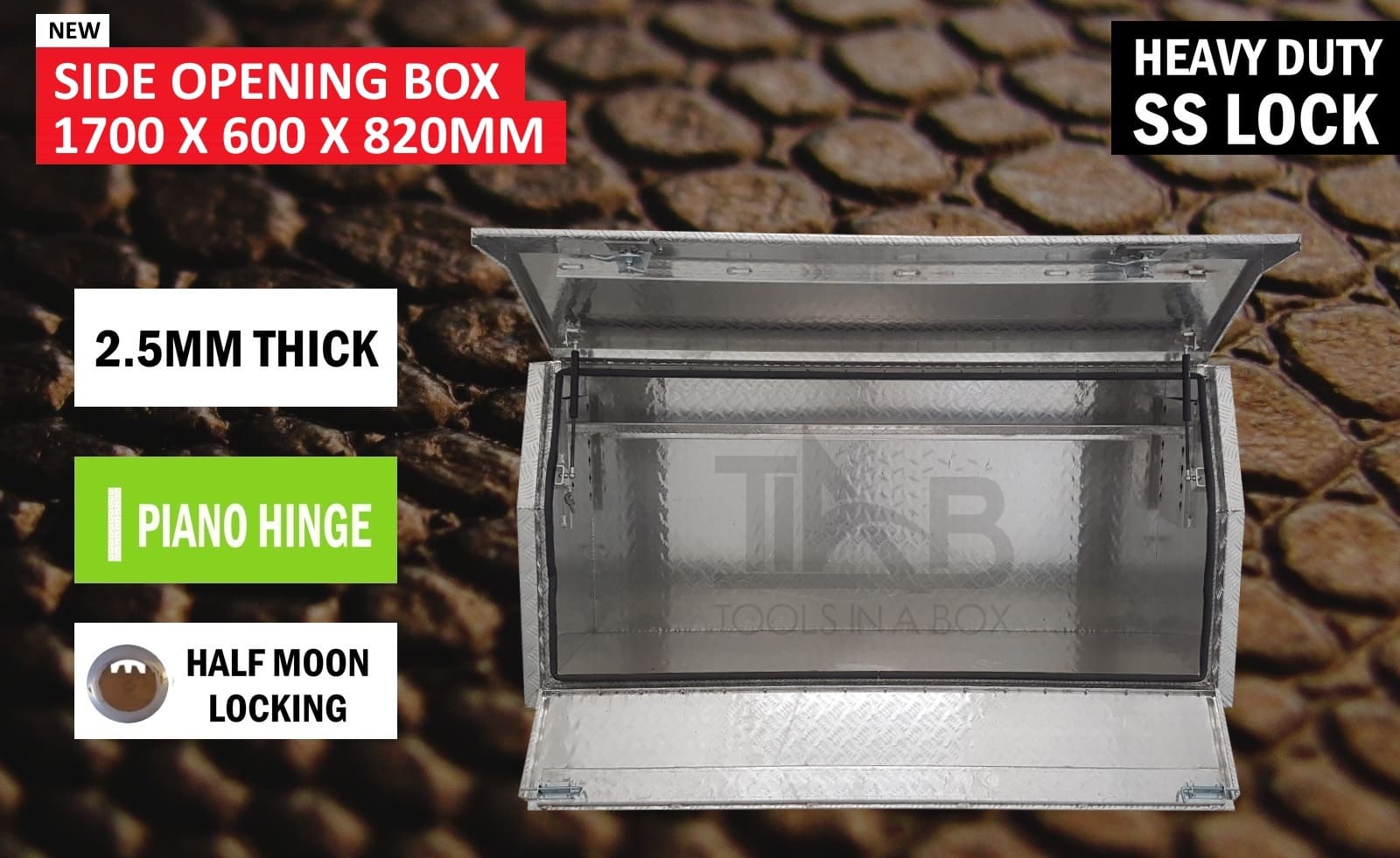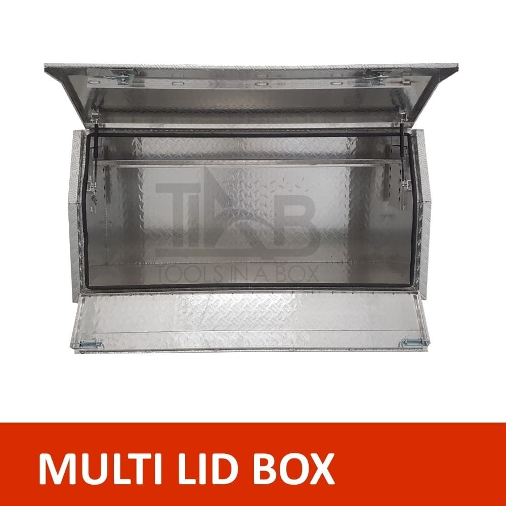 | This is designed to lock up your valuables, The Ute Tool box is hinged with Stainless Steel hinges with a Heavy Duty Whale Tail Lock with Spring Built into the lock to prevent Lock handle becoming lose With the Option to Padlock. Our Boxes are Water/Dust Resistant with Fully welding seams. Our toolboxes are built to the highest quality. Contact us today: 1300 026 937 |