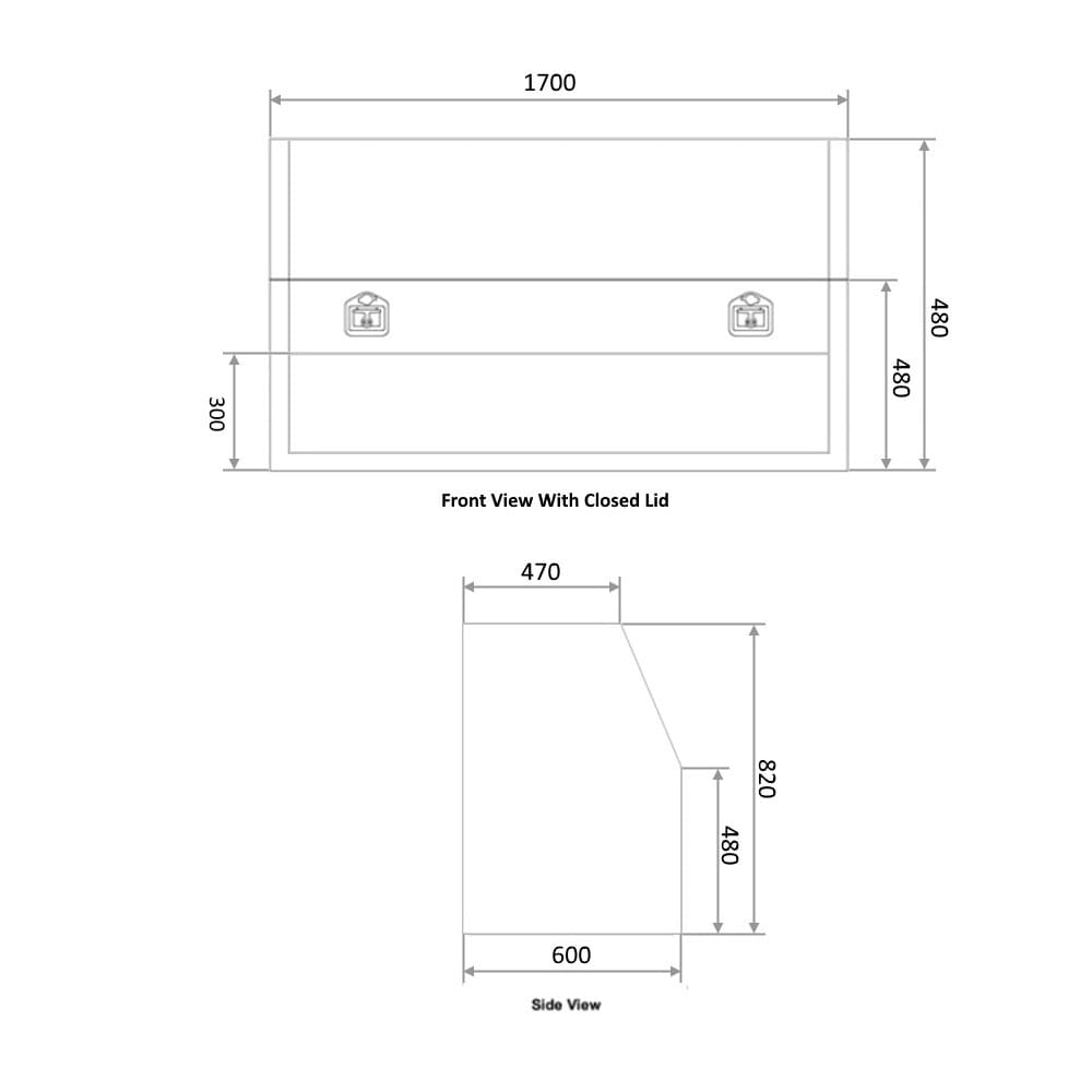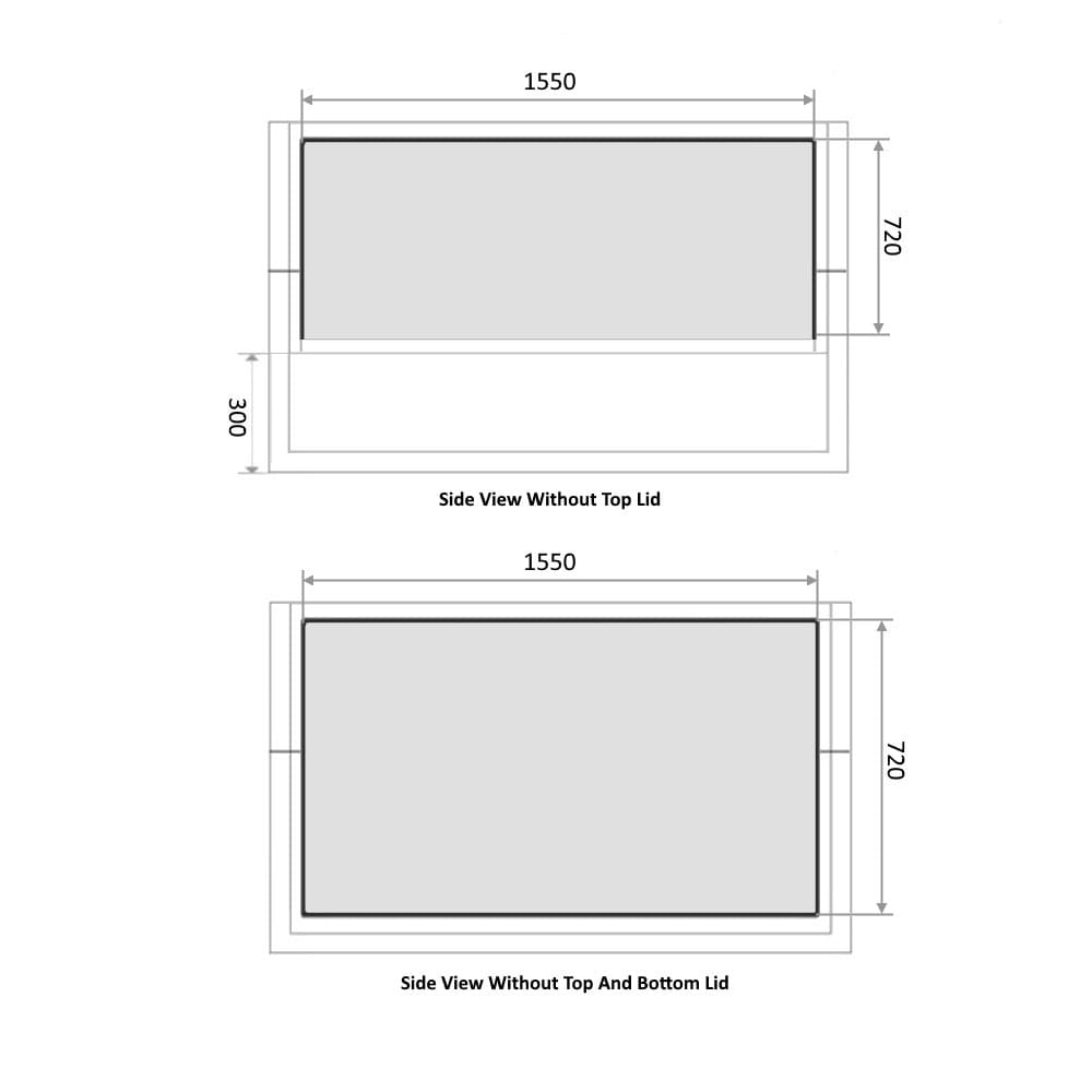 | Opening Sizes: | - Length: 1530mm - Height Open: 710mm - Height Closed: 480mm - Space from Bottom to Lid 300mm |