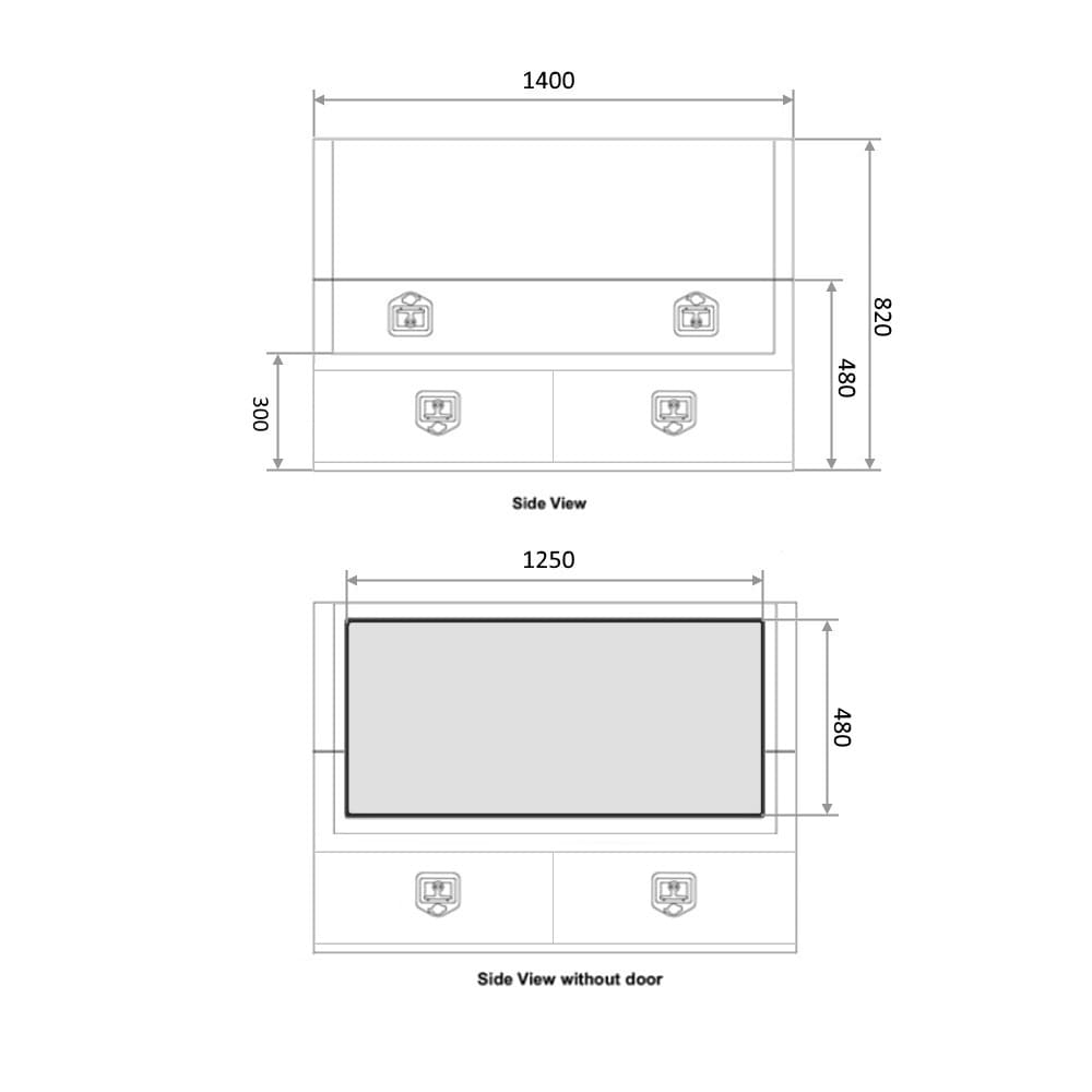 | Opening Sizes: | - Length: 1230mm - Height: 440mm - Space from Bottom to Lid 300mm |