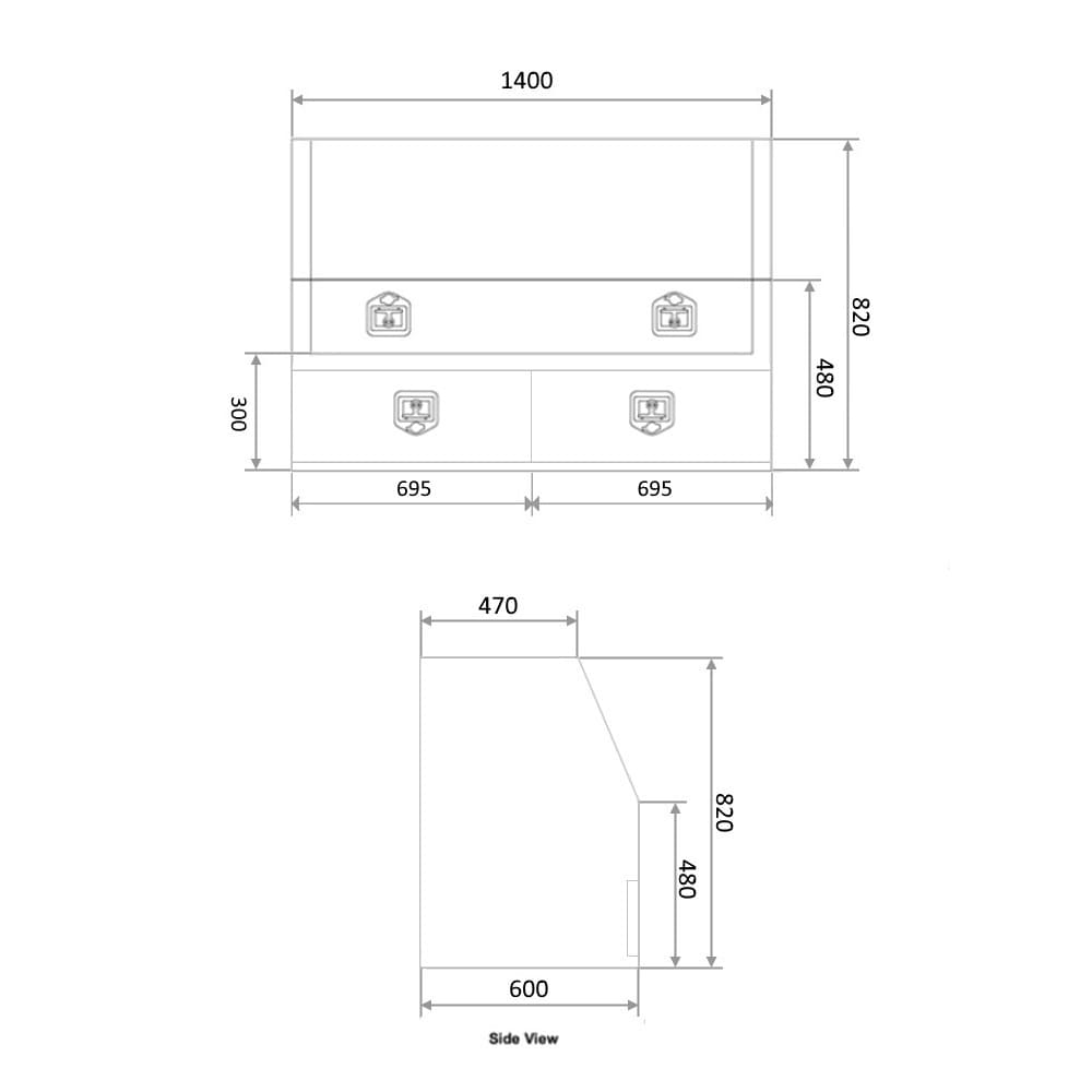 | Drawer Size: | - Length: 580mm - Depth: 560mm - Height: 130mm Each Drawer |