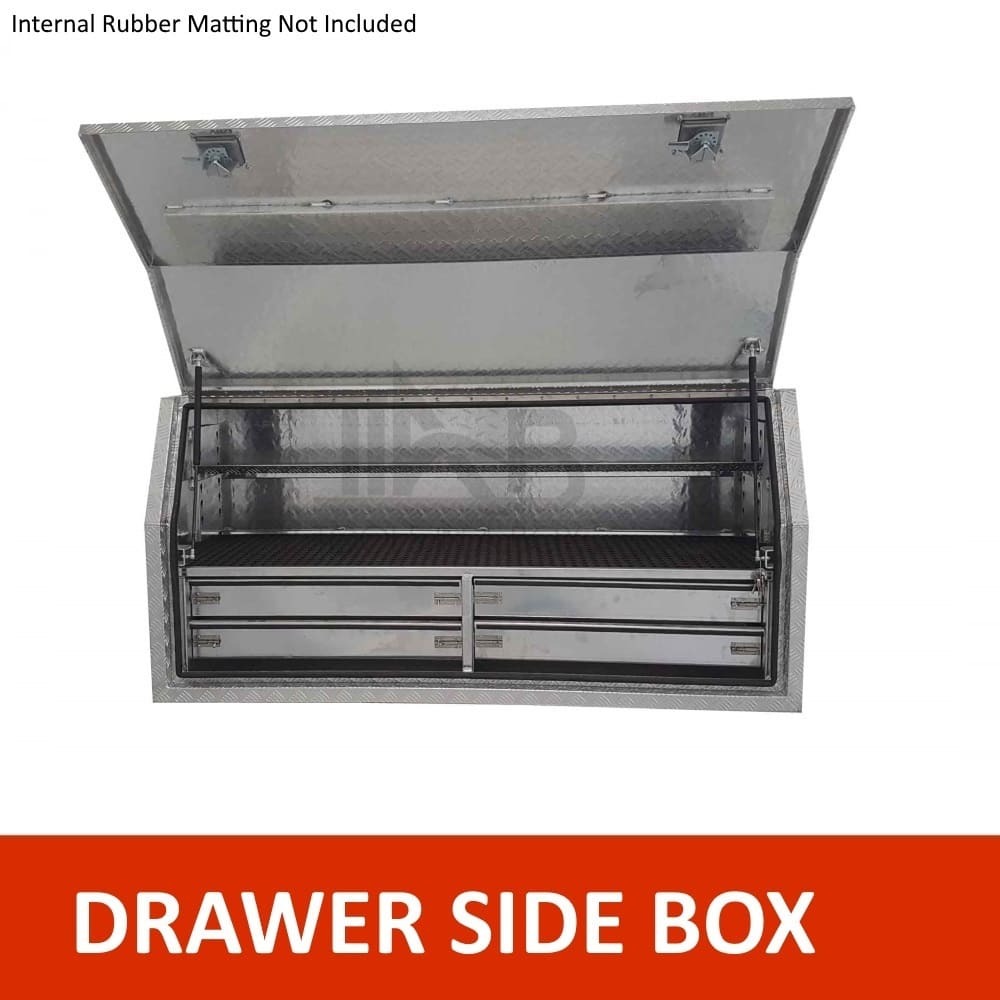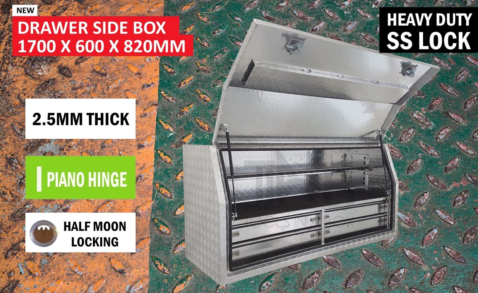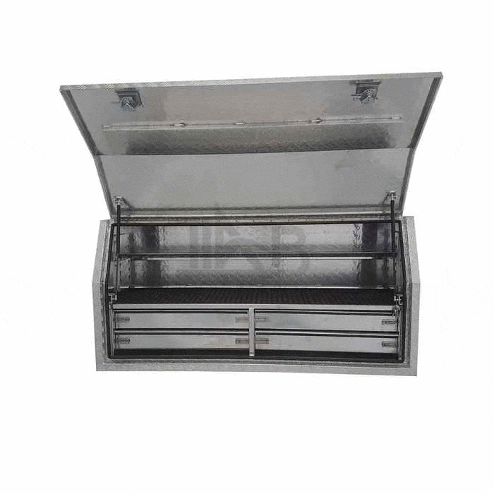 | This is designed to lock up your valuables, The Ute Tool box is hinged with Stainless Steel hinges with a Heavy Duty Whale Tail Lock with Spring Built into the lock to prevent Lock handle becoming lose With the Option to Padlock. Our Boxes are Water/Dust Resistant with Fully welding seams. Our toolboxes are built to the highest quality. Contact us today: 1300 026 937 |