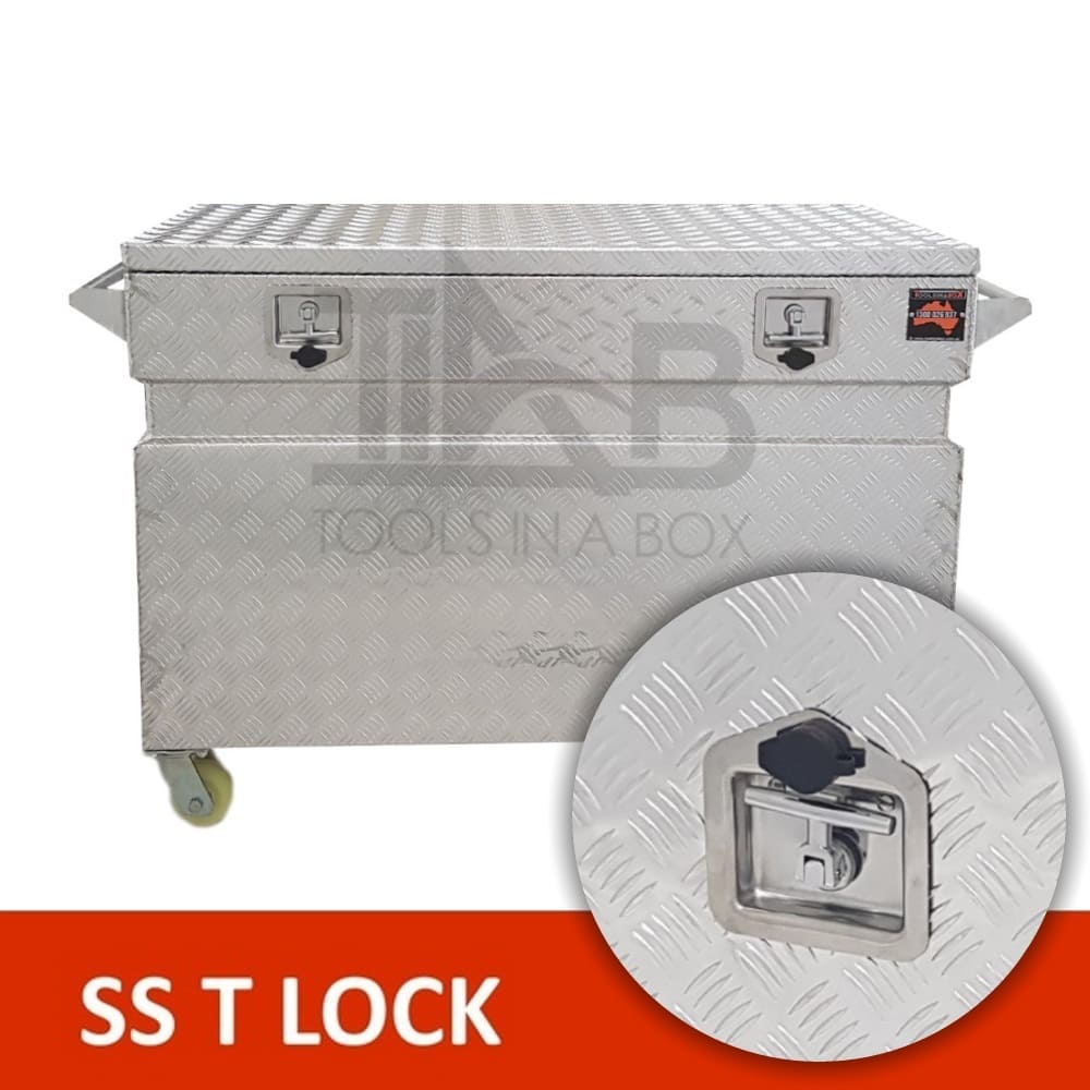 | This is designed to lock up your valuables, The Ute Tool box is hinged with Stainless Steel hinges with a Heavy Duty Stainless T-Locks with Spring Built into the lock to prevent T-Lock handle becoming lose. Our Boxes are Water/Dust Resistant with Fully welding seams. Our toolboxes are built to the highest quality. Contact us today: 1300 026 937 | |