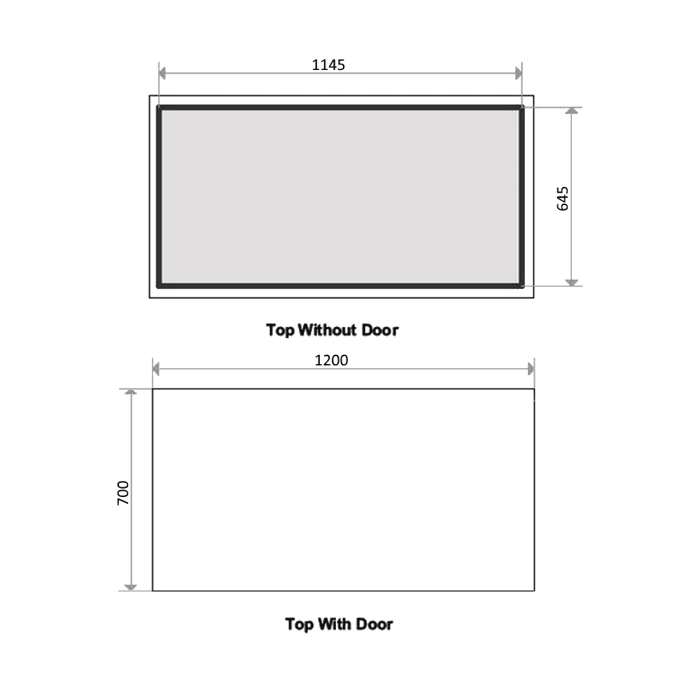 | Opening Sizes: | - Length: 1160mm - Height: 640mm |