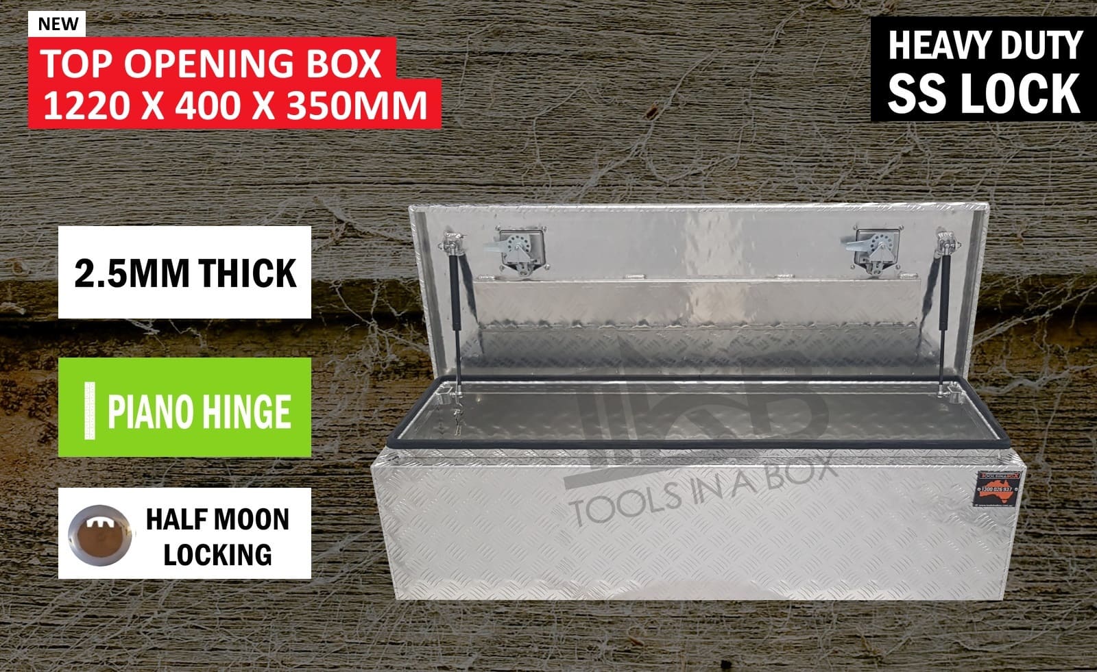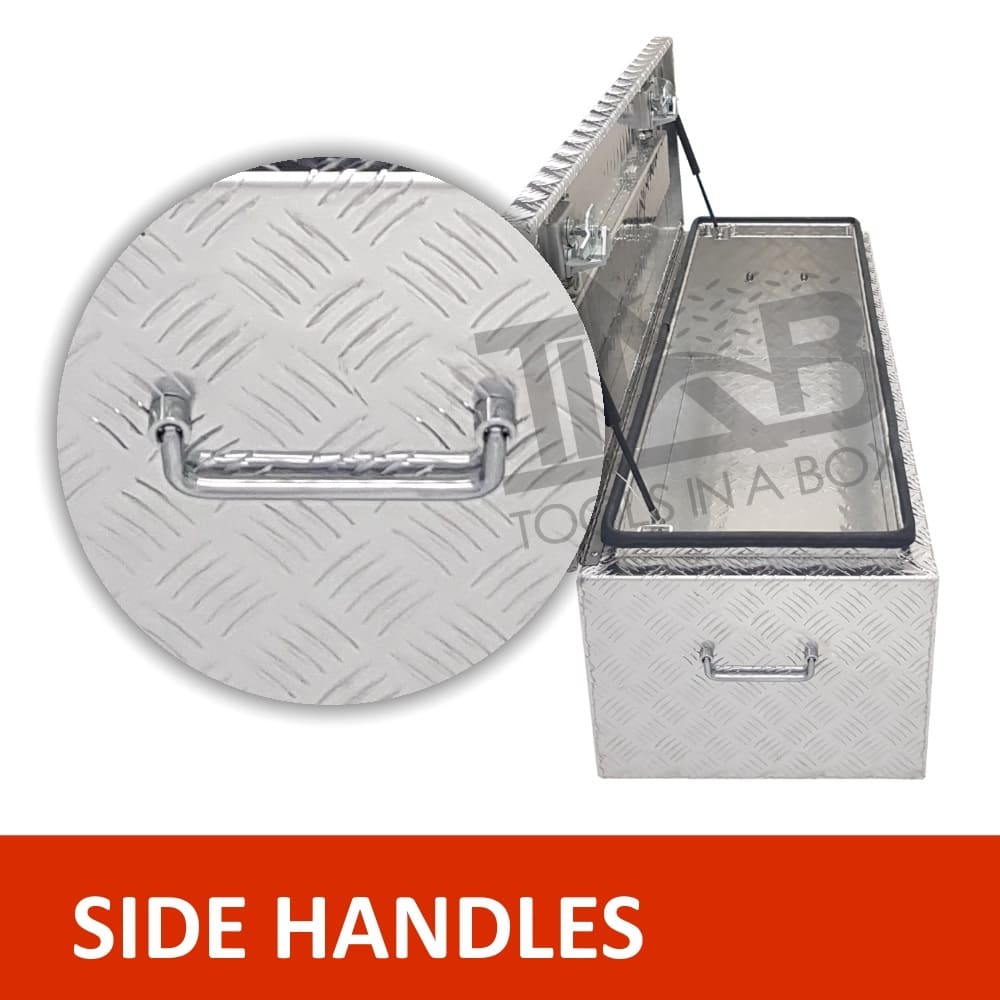 | This is designed to lock up your valuables, The Ute Tool box is hinged with Stainless Steel hinges with a Heavy Duty Stainless Push Locks with Spring Built into the lock to prevenPush Lock handle becoming lose. Our Boxes are Water/Dust Resistant with Fully welding seams. Our toolboxes are built to the highest quality. Contact us today: 1300 026 937 |