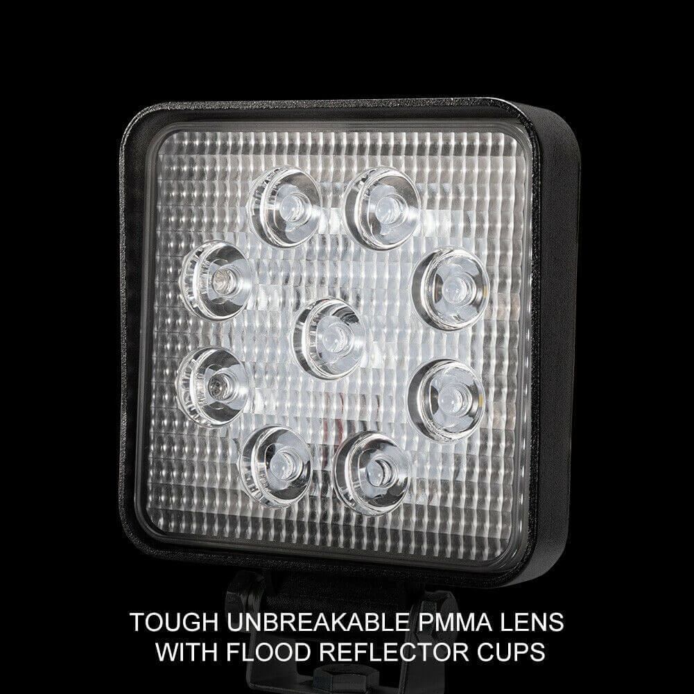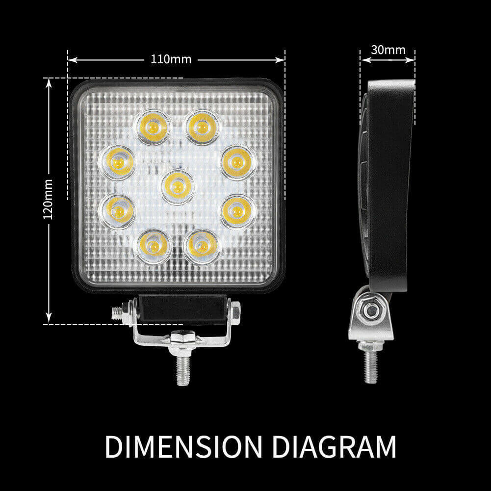 | The LED work light with a power of 27 Watts is perfectly suitable as additional light for your toolbox or work ute and other equipment. It may be small but packs a punch with its 6500k white beam and its 3 WATT each, Also, the light is very bright, which protects the eyes during long work at night. The build quality of the headlight is very high quality, the housing is made of cast aluminium. | |