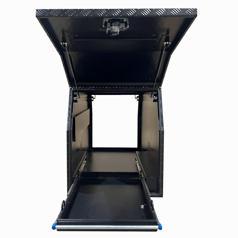 | This is designed to lock up your valuables, The Ute Tool box is hinged with Stainless Steel hinges with a Heavy Duty Stainless Whale Tail Lock with Spring Built into the lock to prevent T-Lock handle becoming lose With the Option to Padlock. Our Boxes are Water/Dust Resistant with Fully welding seams. Our toolboxes are built to the highest quality. Contact us today: 1300 026 937 |